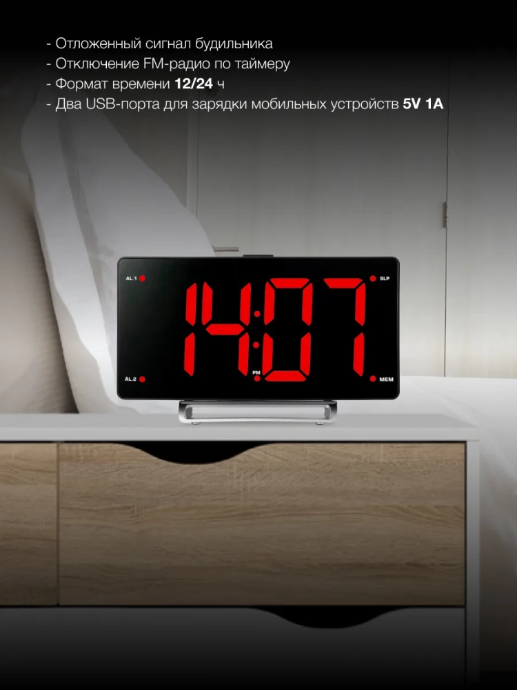 Эти электронные часы также предлагают функцию радиоприемника, что позволит вам наслаждаться любимыми радиостанциями прямо из своей спальни.