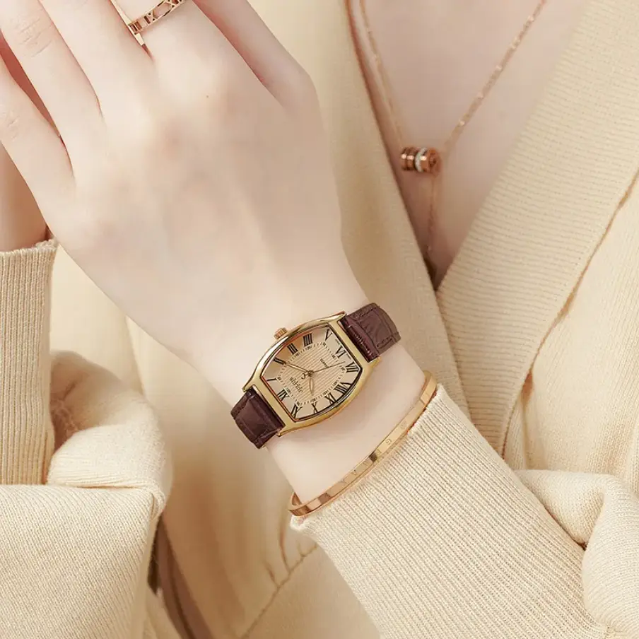 Часы наручные женские, 2.6 х 2.6 см, золото, коричневый ремешок
