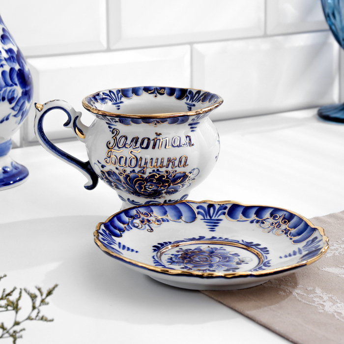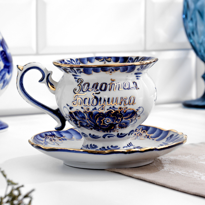 Чайная пара "Грация" , золото, (Золотая Бабушка), 300 мл, гжель