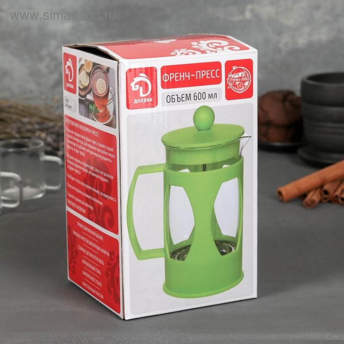 Чайник заварочный френч - пресс Доляна «Риц», 600 мл, стекло, цвет чёрный