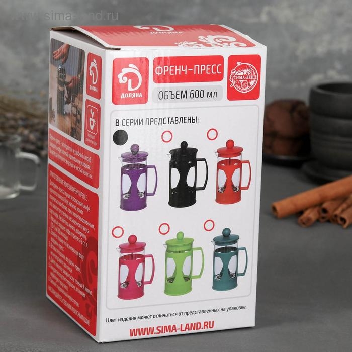 Чайник заварочный френч - пресс Доляна «Оливер», 600 мл, стекло, цвет фиолетовый