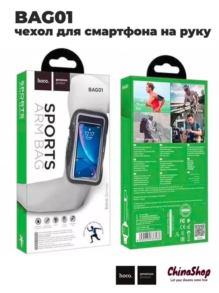 Hoco BAG01 – это находка для людей которые занимаются активными видами спорта или просто ведут активную жизнь. Чехол крепится на руку в районе бицепса и абсолютно не мешает тренировкам, он защитит смартфон от пота, влаги, легкого дождя и царапин.