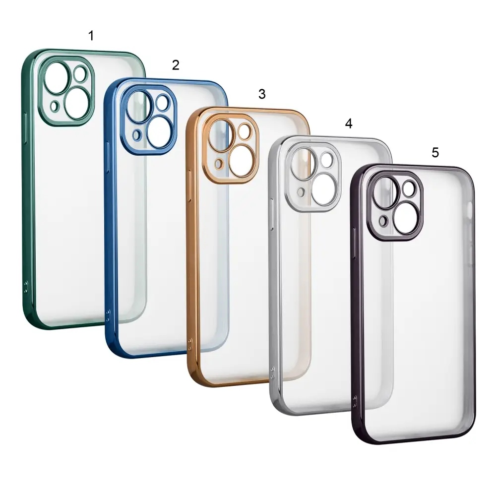 Чехол iPh 13 Mini матовый с защитой камеры (блестящая рамка)