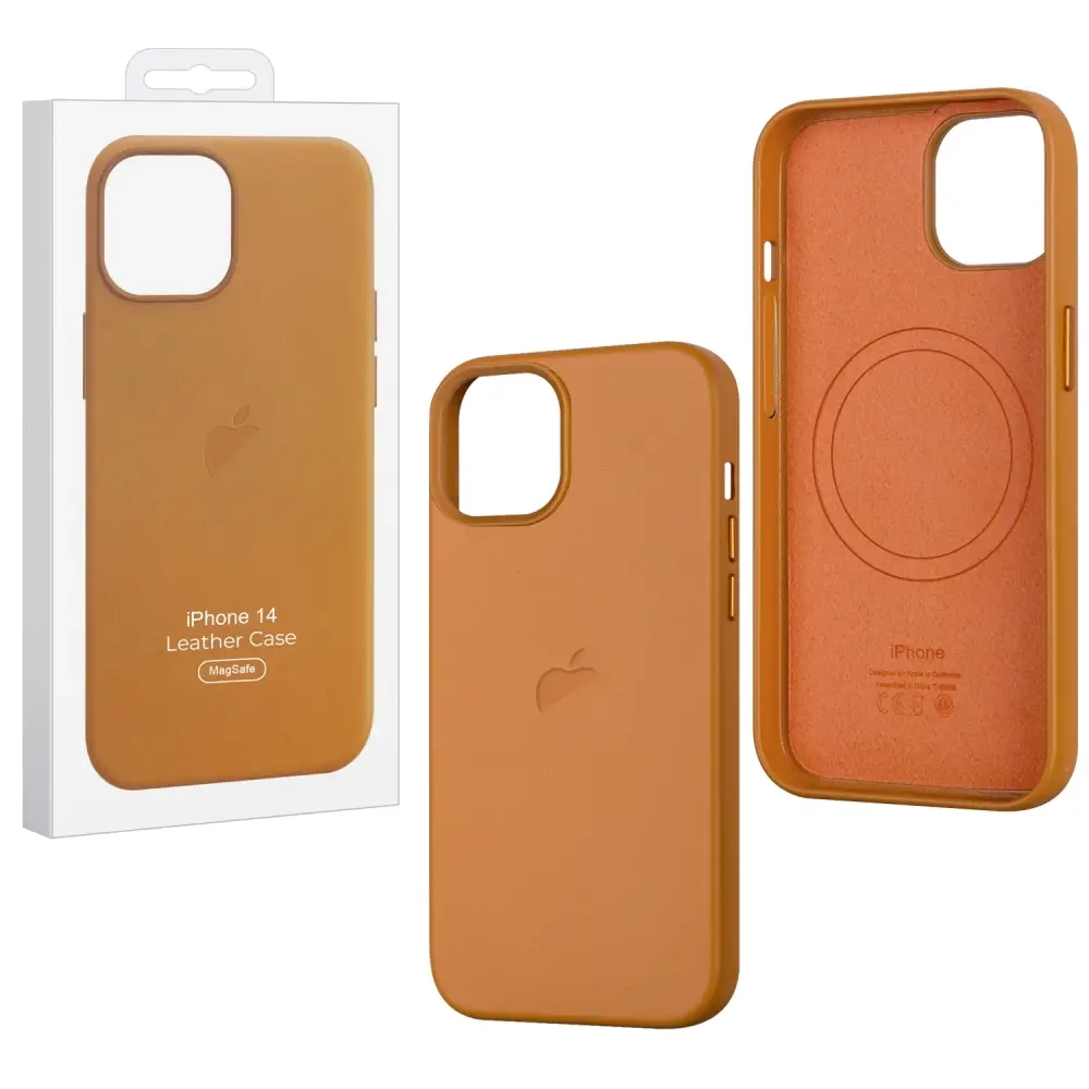 Чехол iPh 14 Leather Case 100% ORG Golden Brown