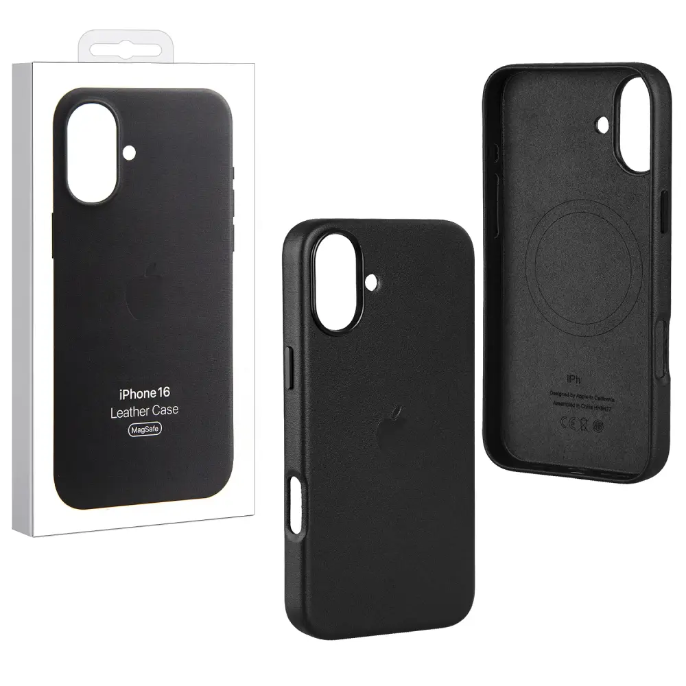 Чехол iPh 16 Leather Case 100% ORG (MagSafe) c LOGO Black