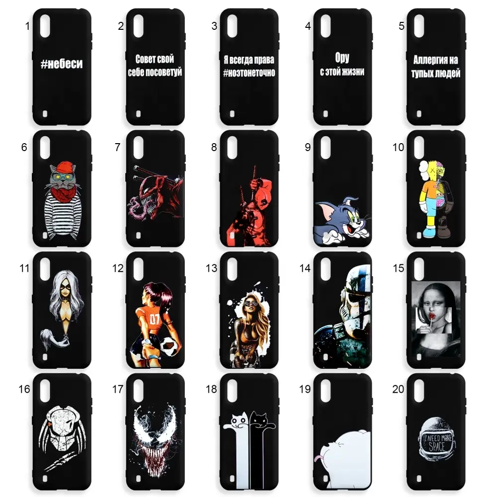 Чехол Samsung A01 TPU 1.0mm матовый черный с принтами в ассортименте