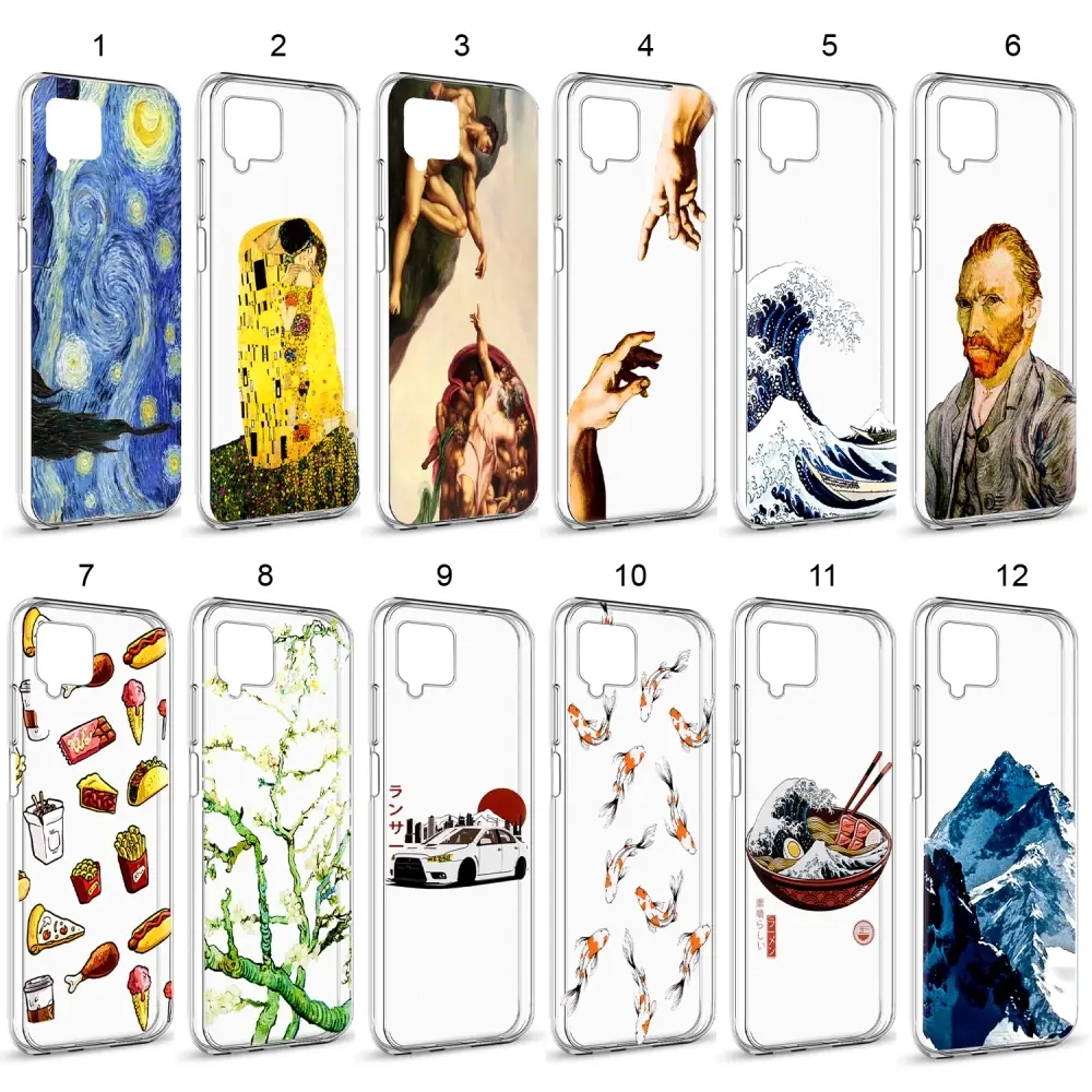 Чехол Samsung A22 TPU 1.0mm прозрачный с принтами в ассортименте