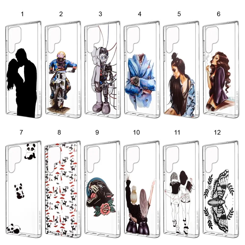 Чехол Samsung S22 Ultra TPU 1.0mm прозрачный с принтами