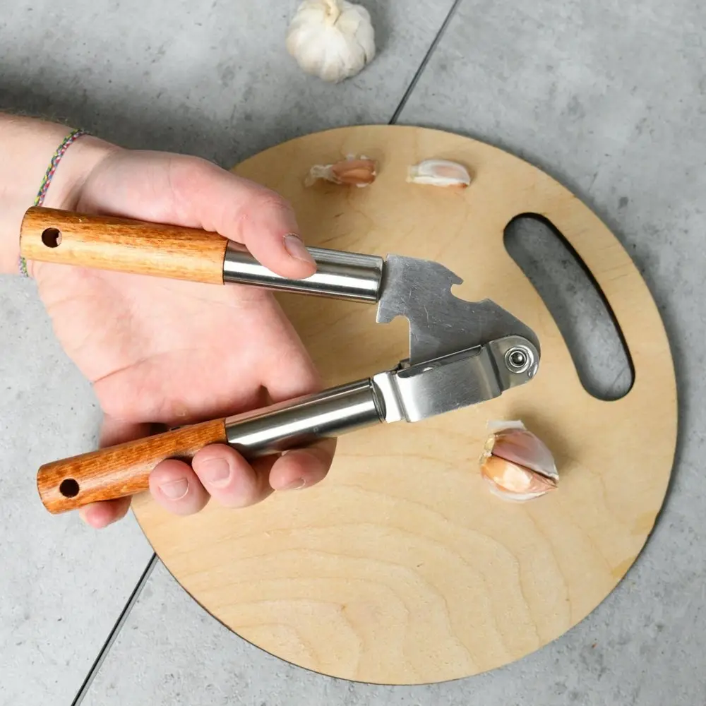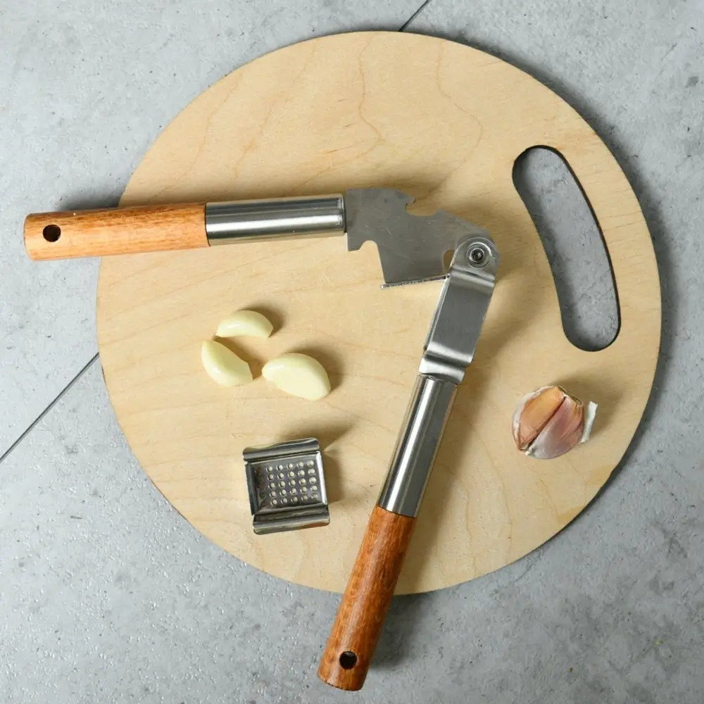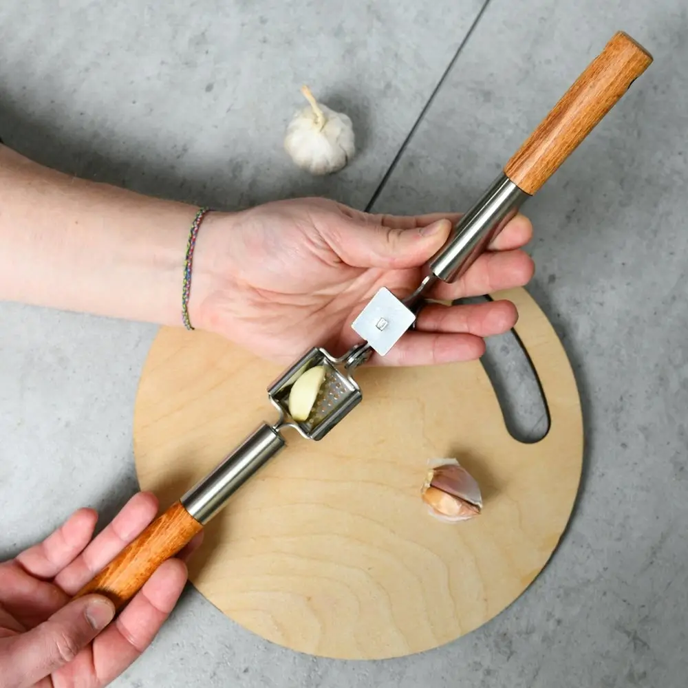 Используется для измельчения чеснока. Изготовлено: рабочая часть из хромированной стали, ручка из дерева. Общая длина 20 см.