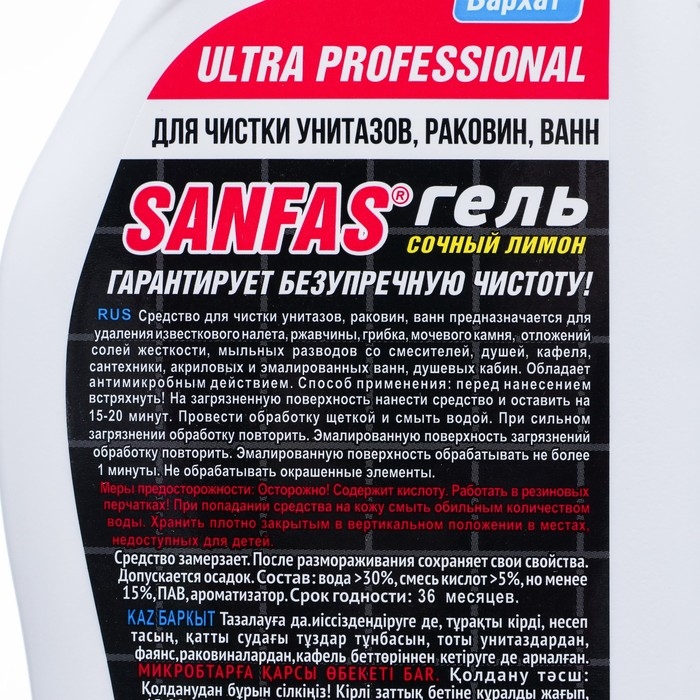 Чистящее средство ULTRA SANFAS для ванной комнаты "Сочный лимон" - ваш надежный помощник в поддержании идеальной чистоты и свежести в ванной комнате.