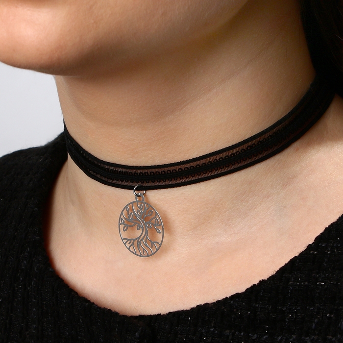 Чокер «Грация искры» широкий, цвет черно-серебряный, L=31 см
