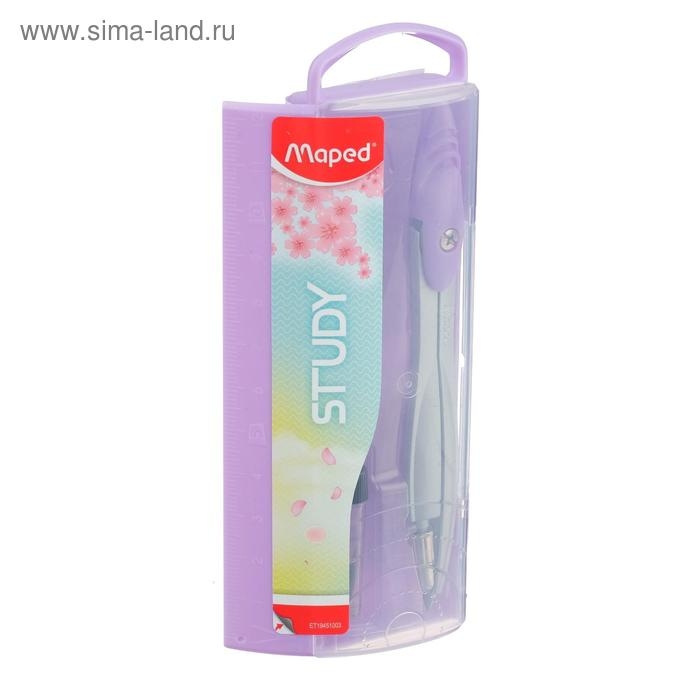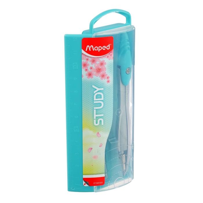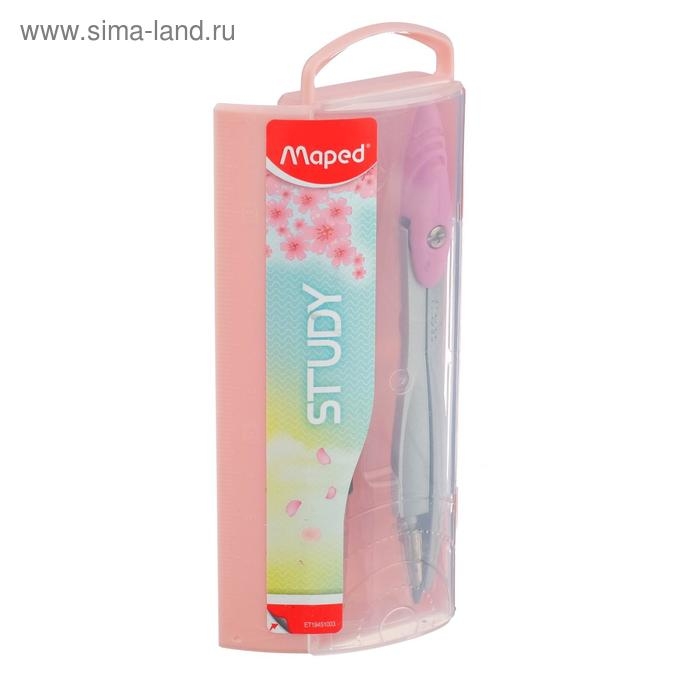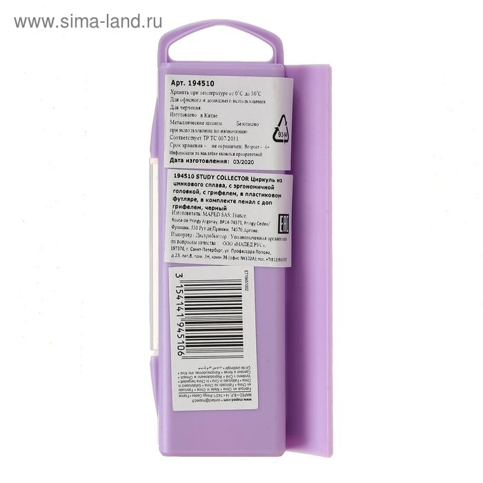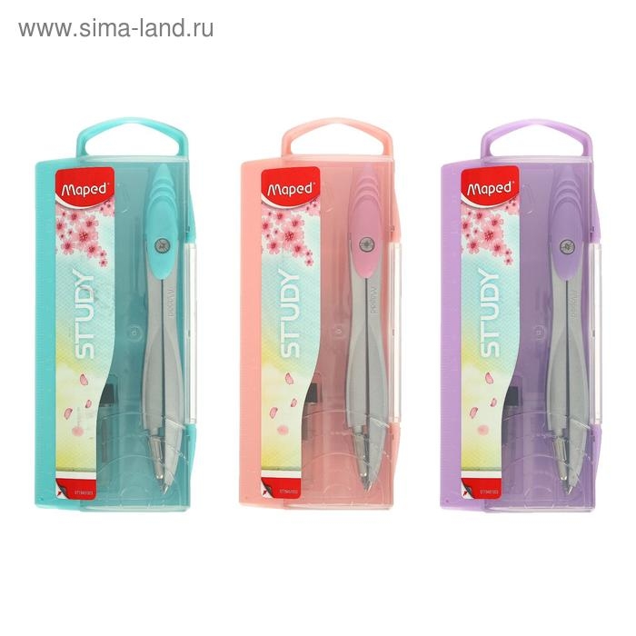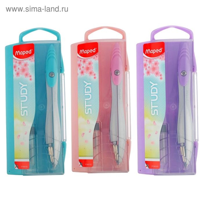 Циркуль из цинкового сплава, Maped Study Collector, с эргономичной головкой, с грифелем, в пластиковом футляре, в комплекте пенал с дополнительным грифелем, микс