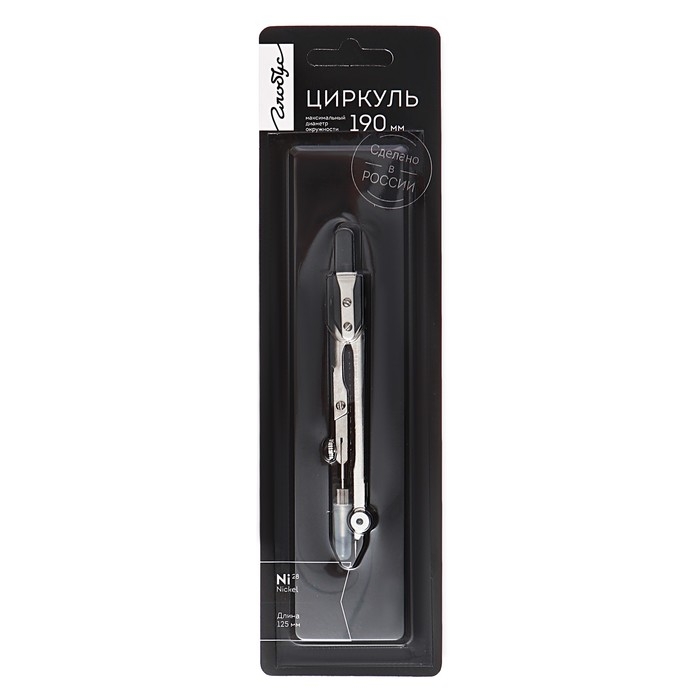 Циркуль стальной для старших классов и студентов GLOBUS Technica, никелированный, латунная карандашная вставка, 125 мм