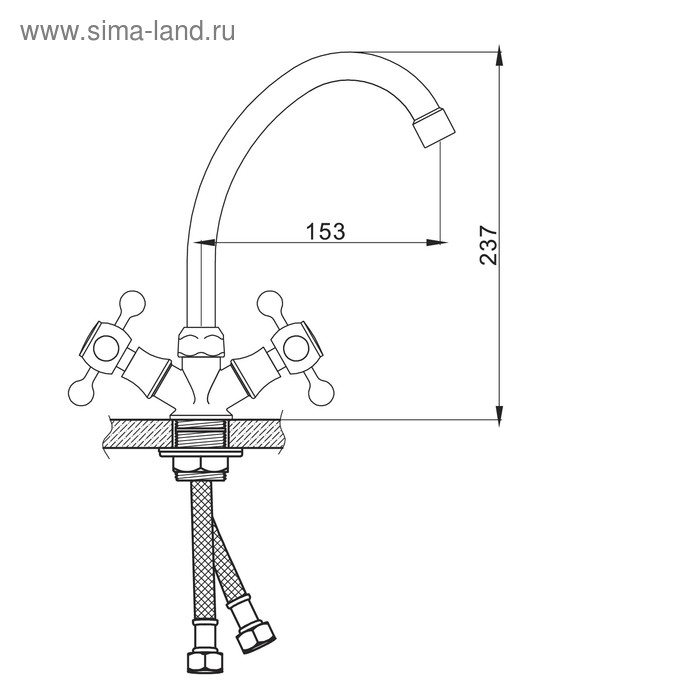 Cмеситель для кухни Accoona A4678, двухвентильный, с гайкой, силумин, хром