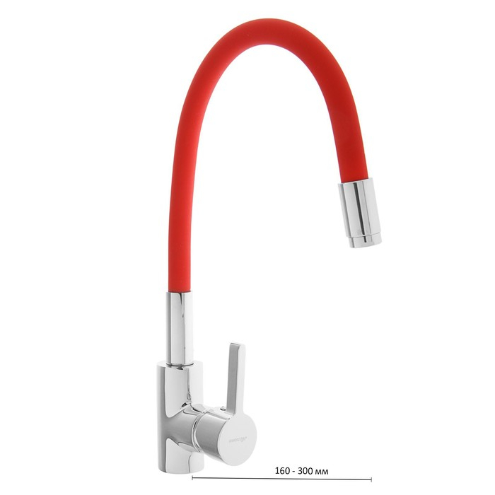 Cмеситель для кухни Accoona A9890N, однорычажный, силиконовый излив, красный/хром