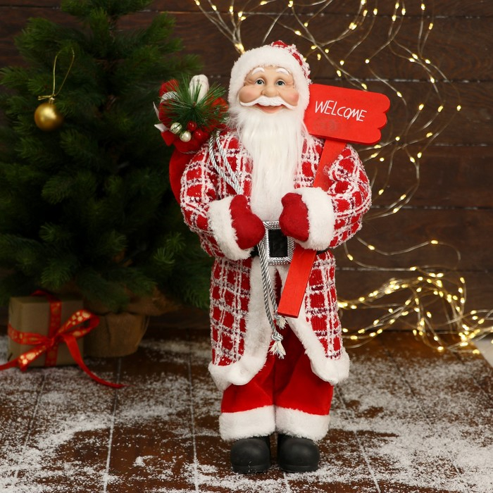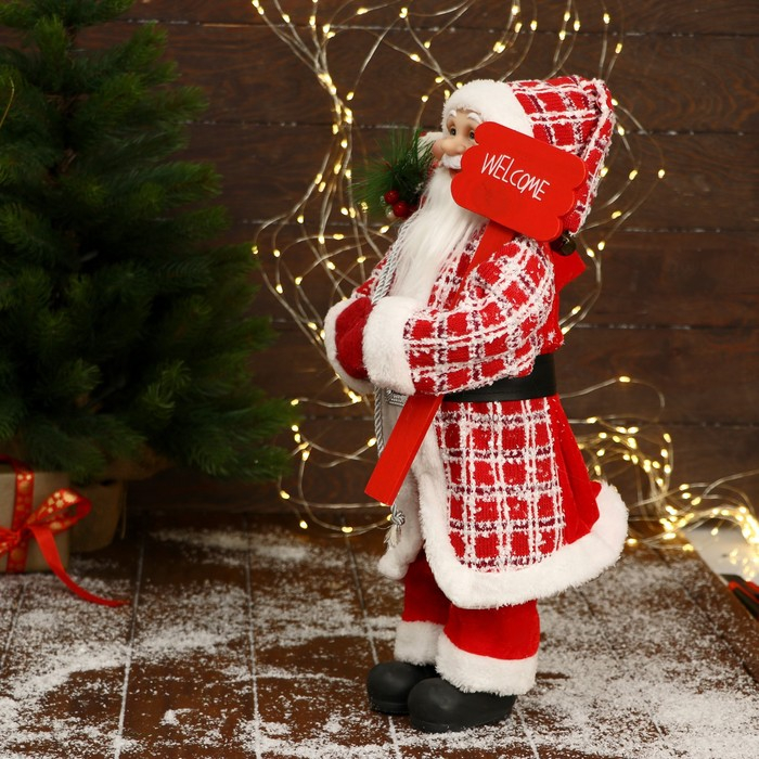 Дед Мороз "В красной клетчатой шубе, с табличкой и подарками" 25х45 см