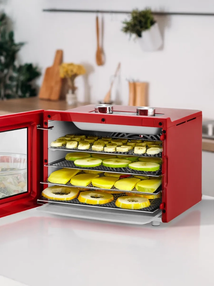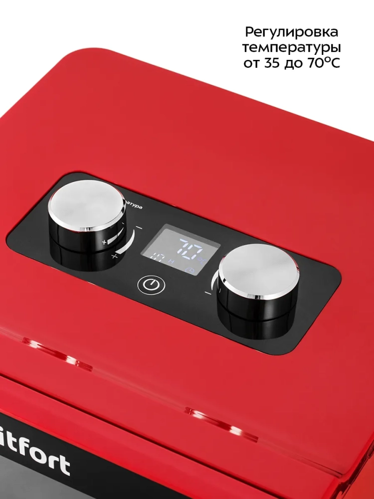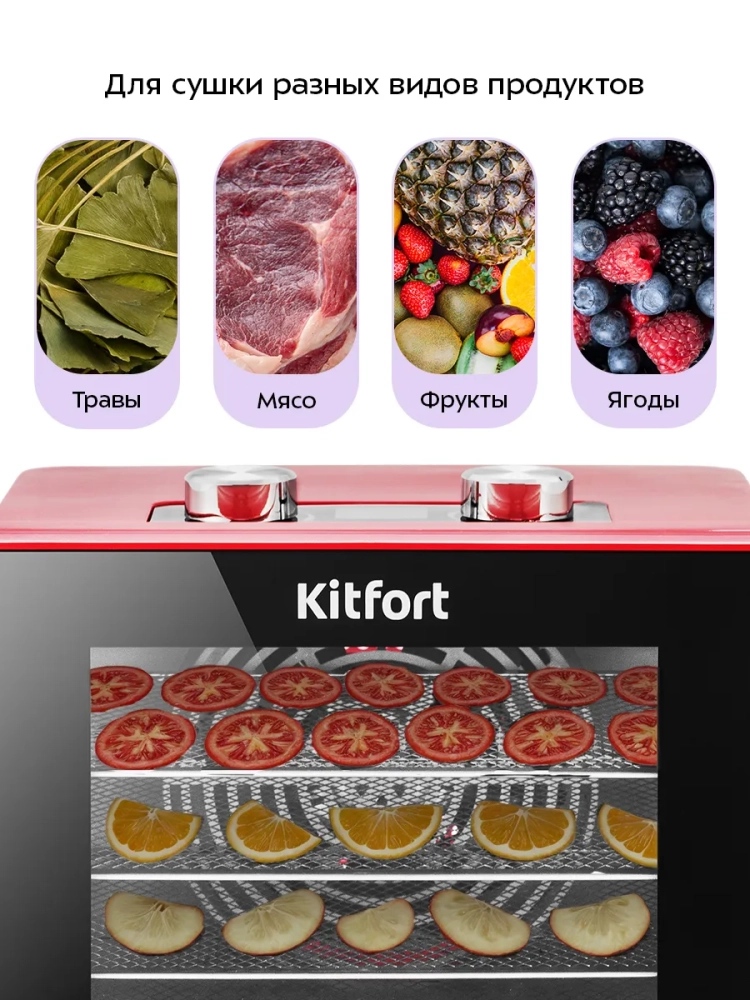Электросушилка Kitfort КТ-1915 — это универсальный электрический бытовой прибор, который станет незаменимым помощником на вашей кухне. Она предназначена для сушки различных продуктов, таких как овощи, фрукты, ягоды и грибы. Благодаря этому устройству вы сможете сохранить все полезные свойства ваших любимых фруктов и овощей на долгое время. Сушилка также подходит для обработки мяса и рыбы, что делает её идеальным выбором для любителей домашних заготовок. С помощью специального поддона можно готовить пастилу из фруктов или ягод. В комплект входят 4 поддона из нержавеющей стали и один поддон для жидкости, что позволяет одновременно сушить разные продукты без смешения запахов благодаря горизонтальному обдуву воздуха. Мощный нагревательный элемент в сочетании с вентилятором большого диаметра обеспечивает равномерное распределение тепла по всей камере сушилки. Это гарантирует качественную сушку каждого продукта без потери вкусовых качеств. Температура сушки регулируется в диапазоне от 35 до 70 градусов Цельсия с шагом в 5 градусов, что позволяет точно настроить процесс под каждый вид продукта. Электросушилка оснащена таймером до 24 часов работы с шагом в один час — это удобно для планирования времени приготовления заготовок. Овощесушилка Kitfort КТ-1915 отличается простотой использования и надежностью. Этот дегидратор идеально подходит не только для домашнего использования, но и станет отличным подарком любителям здорового питания или тем, кто увлекается кулинарией. Дигидратор поможет вам наслаждаться вкусными домашними заготовками круглый год!