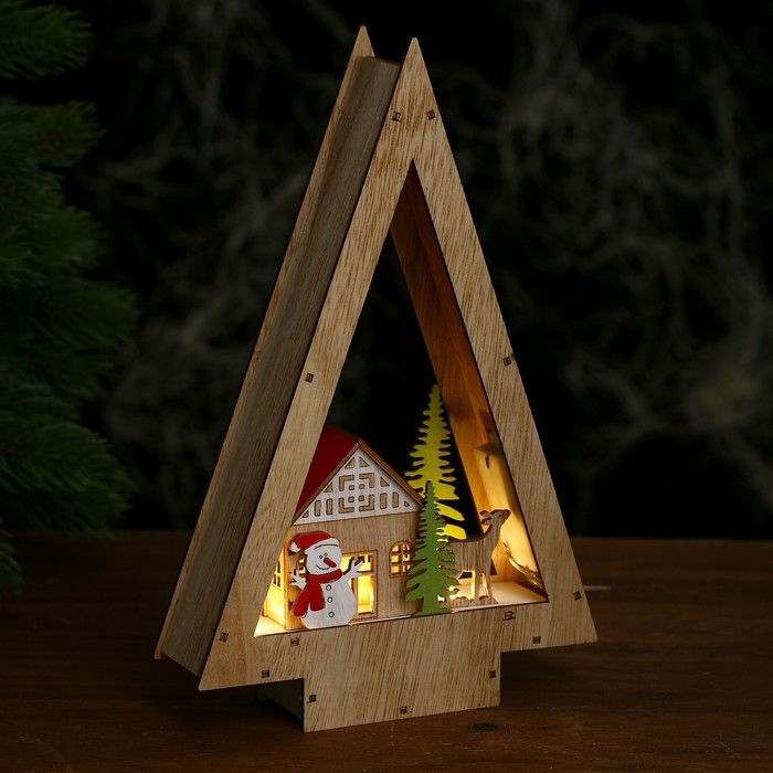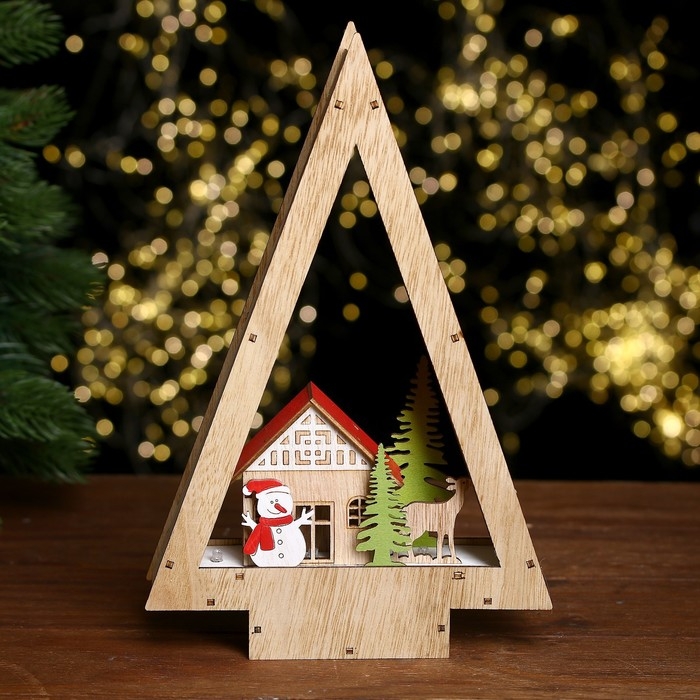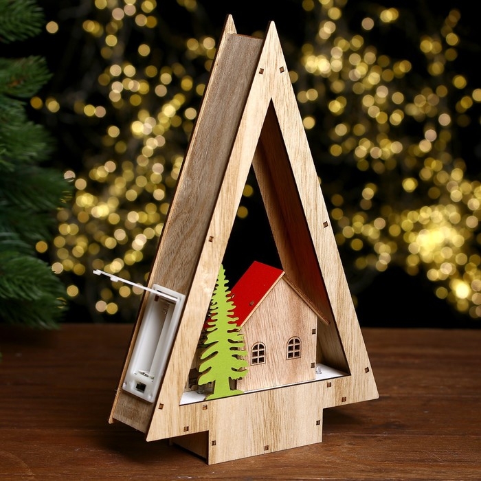 Декор с подсветкой «Домик в виде ёлки» 18 × 5 × 28 см