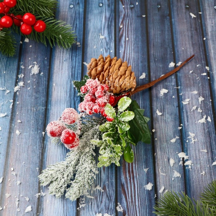 Декор "Зимние грезы" ягоды хвоя шишка, 21 см