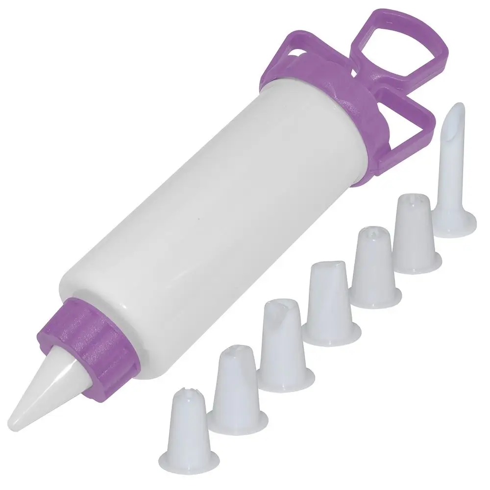 Украшайте кондитерские изделия с помощью специальных декораторов для крема. Набор подходит для оригинального оформления пирожных, тортов, пирогов и капкейков. В комплект входит 8 насадок с разными прорезями, которые позволяют добиться разнообразной формы крема при нанесении. Также в комплекте представлен кондитерский шприц объемом 100 мл.
