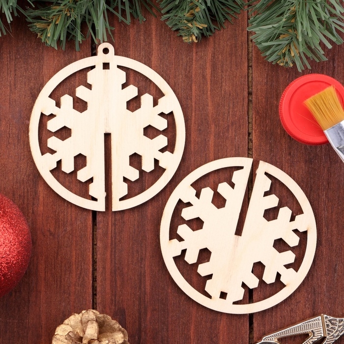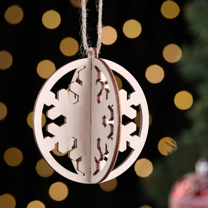 Деревянная игрушка на ёлку "Снежинка", шар, диаметр 8 см