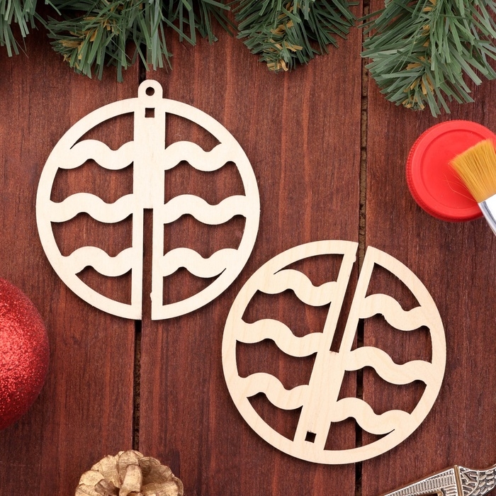 Деревянная игрушка на ёлку "Волны", шар, диаметр 8 см