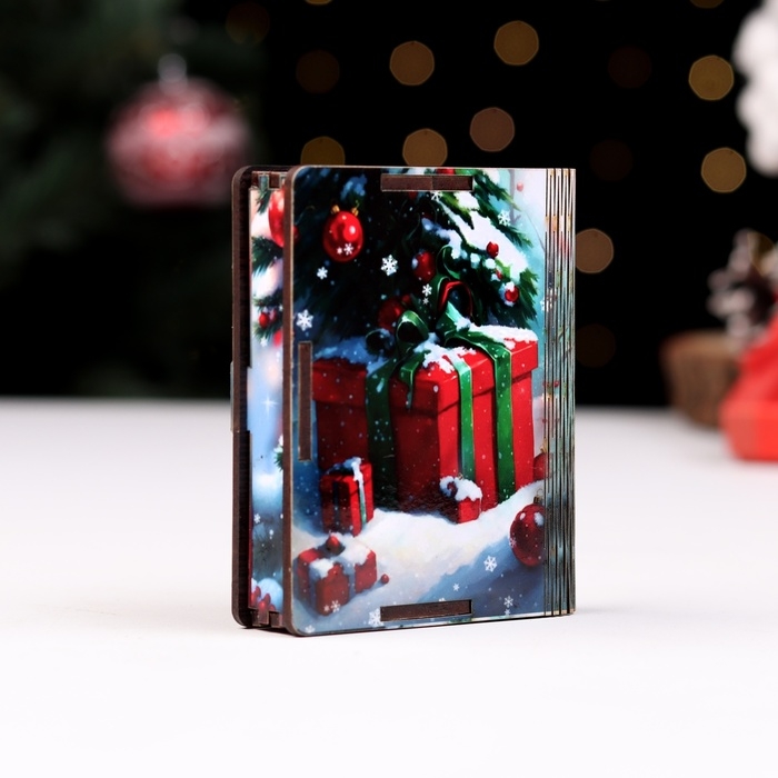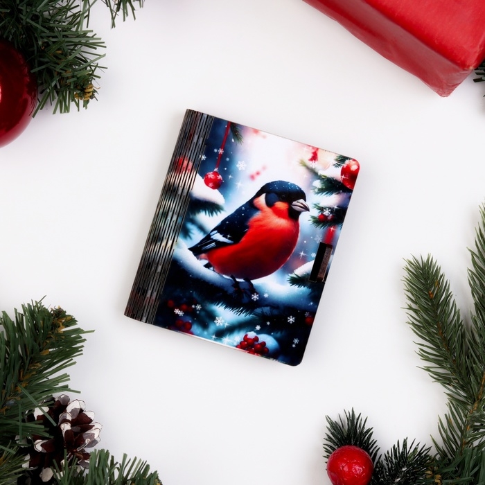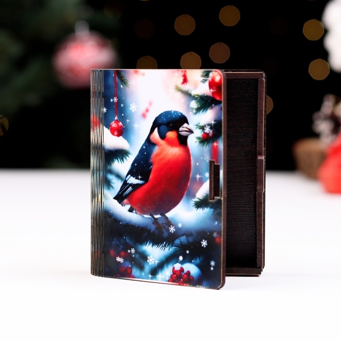 Деревянный конверт для денег № 1 "Снегирь на елке", 9,8х8,5х2 см