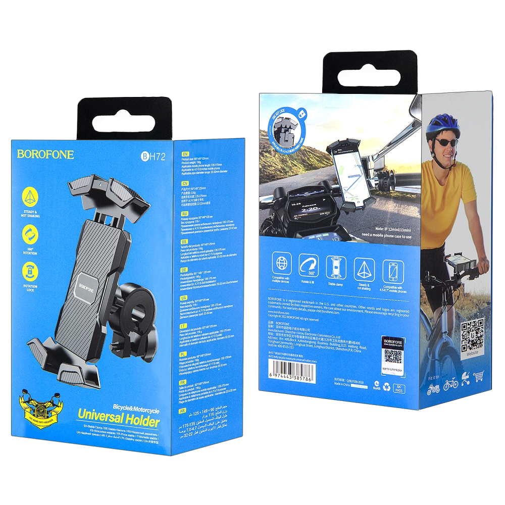 Держатель BH72 для телефона на мотоцикл и велосипед Borofone черный