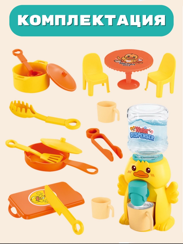 В нашем наборе вы найдете 17 предметов, выполненных из качественного и безопасного пластика, который идеально подходит для маленьких поваров. Яркие цвета и разнообразные формы делают каждую игру увлекательной. В комплект входят чайные чашки, приборы для кухни, столик со стульчиками, сковородки и даже маленький кулер, в который можно налить воду для настоящего чаепития!