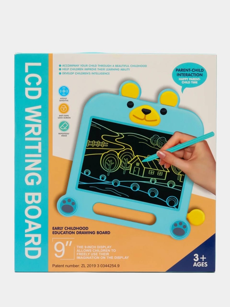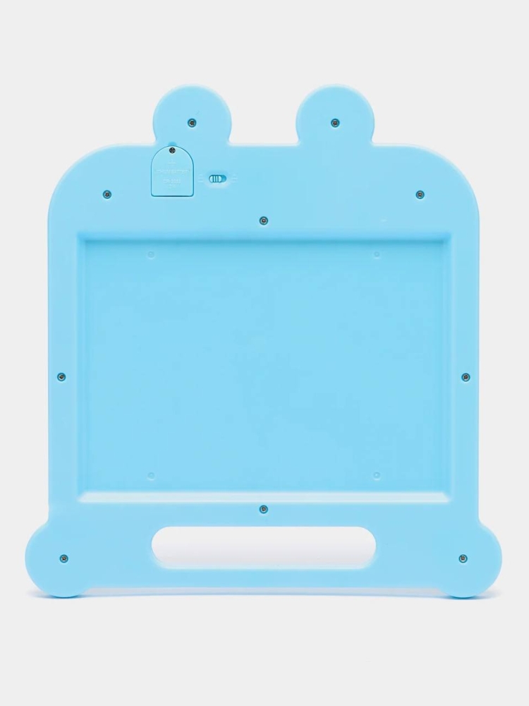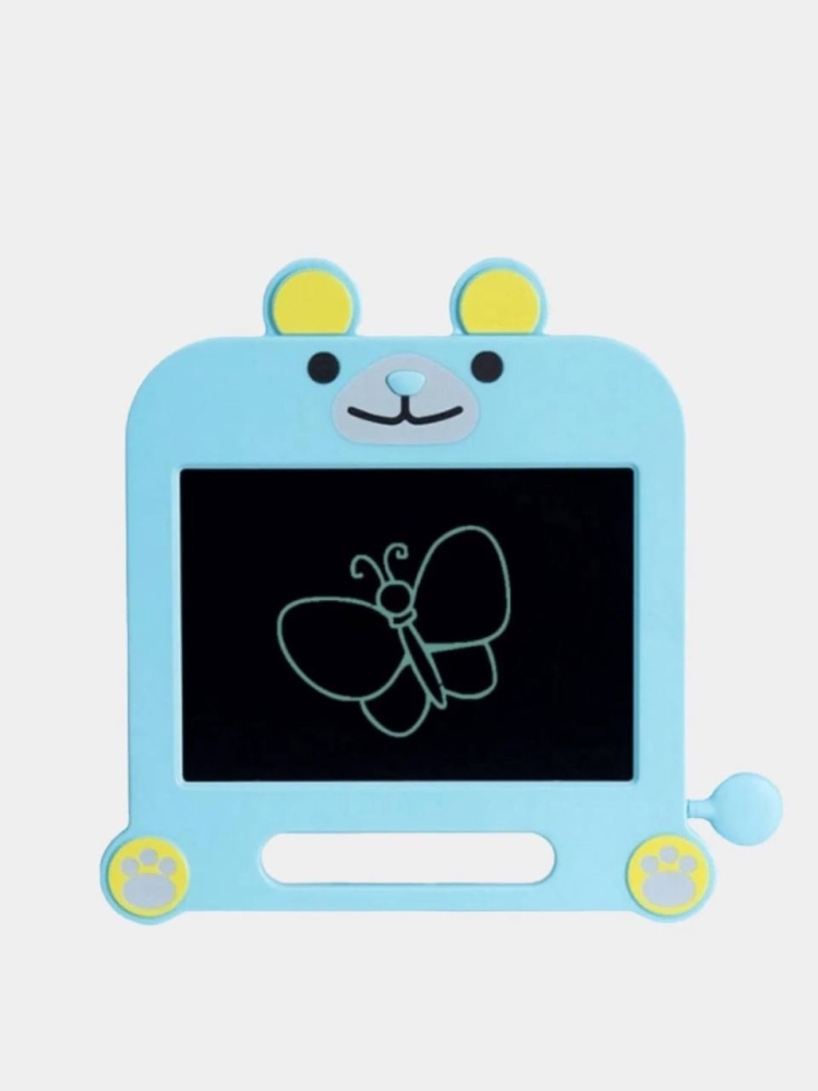 Прелестный планшет в виде медвежонка. Качественный и приятный на ощупь. Экран работает по технологии LCD без подсветки и электрической энергии. Одна миниатюрная батарейка нужна для стирания нарисованного (входит в комплект). Одной батарейки хватает приблизительно на год использования планшета. В комплект так же входит пластиковая "ручка". Но для рисования можно использовать любой твердый не острый предмет. Толщина рисунка зависит от силы надавливания. Ручка мягко и плавно скользит по экрану, не царапая его, оставляя четкие линии яркого, как будто светящегося желто-зеленого цвета (Внимание! Планшет рисует одним цветом! Желто-зеленым!) Для тех, кто боится случайного стирания рисунка, предусмотрен защитный замок на обратной стороне планшета. Такой планшет станет отличным подарком не только для ваших деток, его можно использовать в повседневной жизни для взрослых, вместо бумаги с ручкой. Покупая такой планшет, вы заботитесь об окружающей среде, ведь он практически не потребляет электроэнергии, экономит большое количество бумаги , а так же для него не нужны канцелярских товары в виде ручек, фломастеров и карандашей.