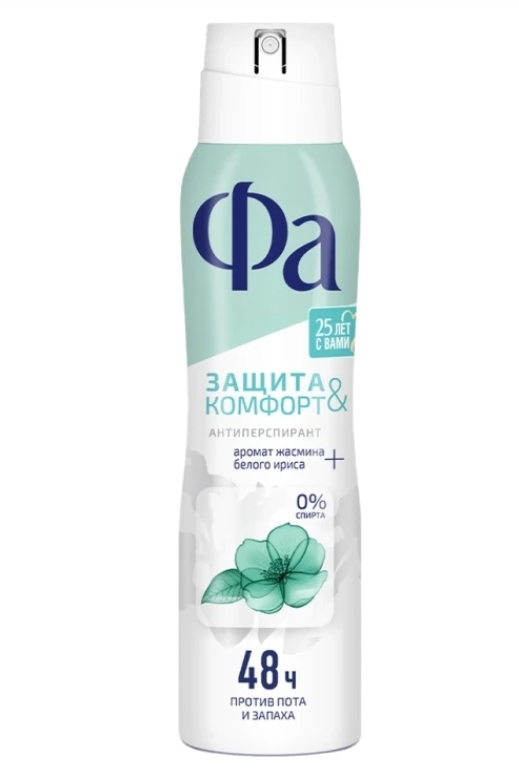 Дезодорант-антиперспирант спрей женский ФА Защита&Комфорт Жасмин, 150мл