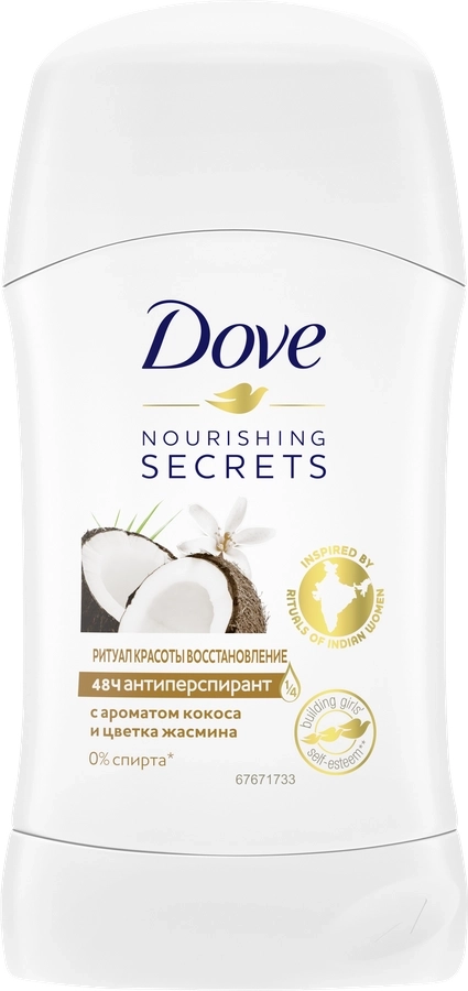 Дезодорант-антиперспирант стик женский DOVE Ритуал красоты Восстановление с ароматом кокоса и цветка жасмина
