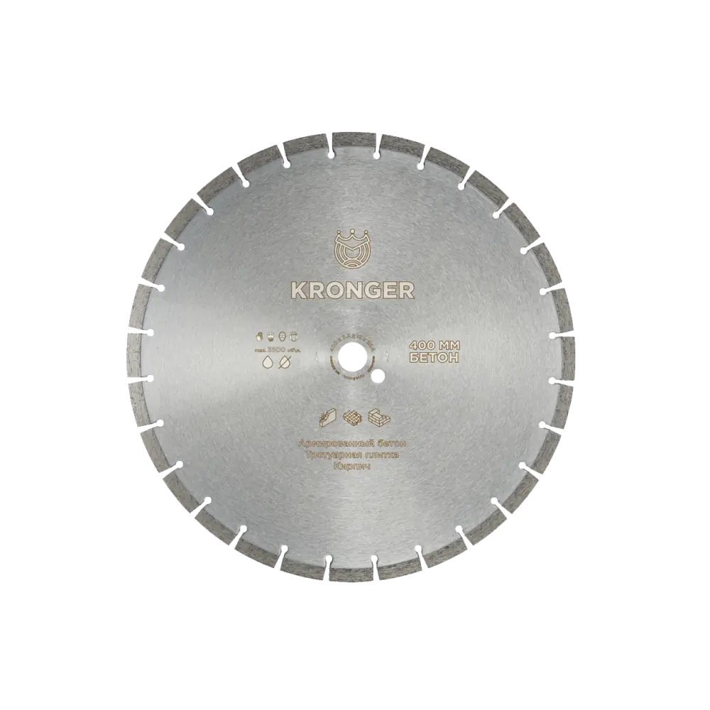 Алмазный диск Kronger - сегментный, имеет толщину алмазного слоя 3,5 мм, высоту 12 мм.
