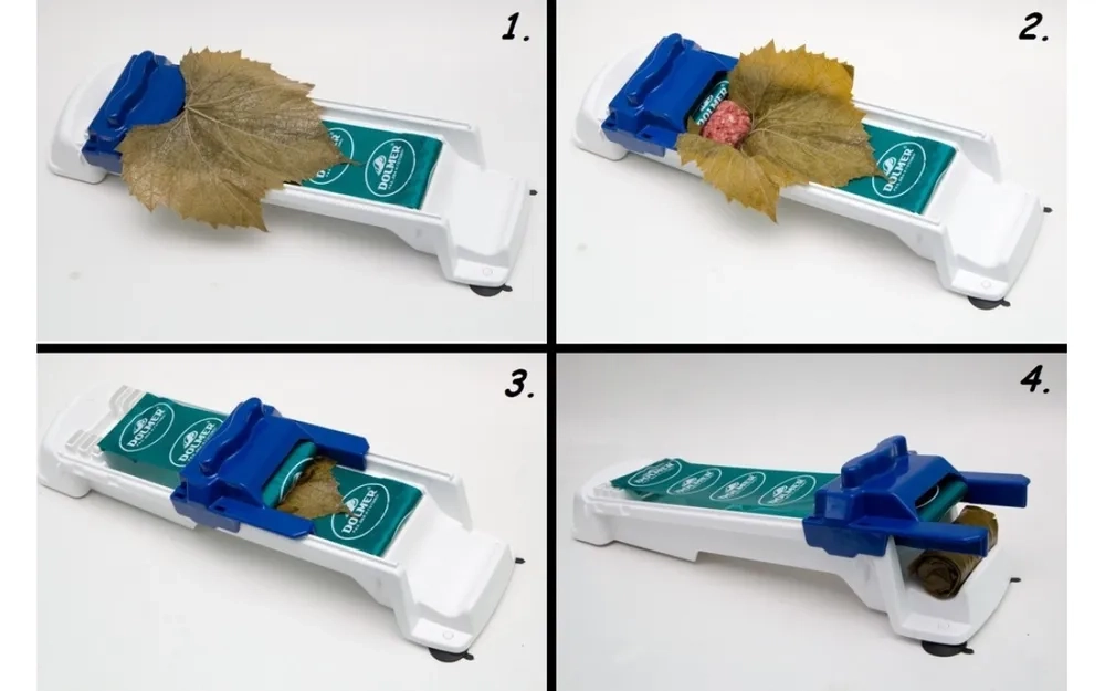 Все мы любим долму и голубцы, самое сложное в приготовлении этих блюд - это завернуть фарш в листья винограда или капусты так, чтоб он не рассыпался и листья не разворачивались снова, а блюдо выглядело аккуратным и аппетитным. Долмер - незаменимое устройство на Вашей кухне, с его помощью завернуть рулетики можно очень быстро и просто, а также они будут одинаковыми по размеру. Принцип работы предельно простой - положите капустный или виноградный лист на прибор, а затем сверху наложите мясной фарш и поместите всё вместе в специальное углубление. Плавно двигайте каретку в крайнее положение, чтобы сделать рулетик. Для получения продукта разных диаметров, установите регулировочную планку на нужный уровень. Ширина ленты: 6,2 см.