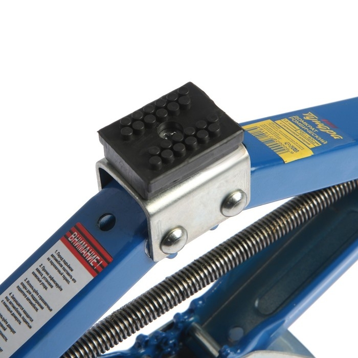 Уровень подъёма домкрата TUNDRA регулируется рукояткой. Резиновая опора не повредит корпус автомобиля, а лакокрасочное покрытие агрегата препятствует появлению ржавчины.