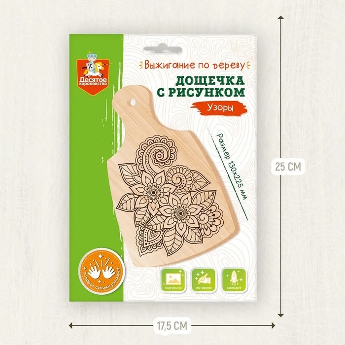 - Рисунок нанесён на доску специальной краской, не выделяющей в процессе выжигания вредных веществ.