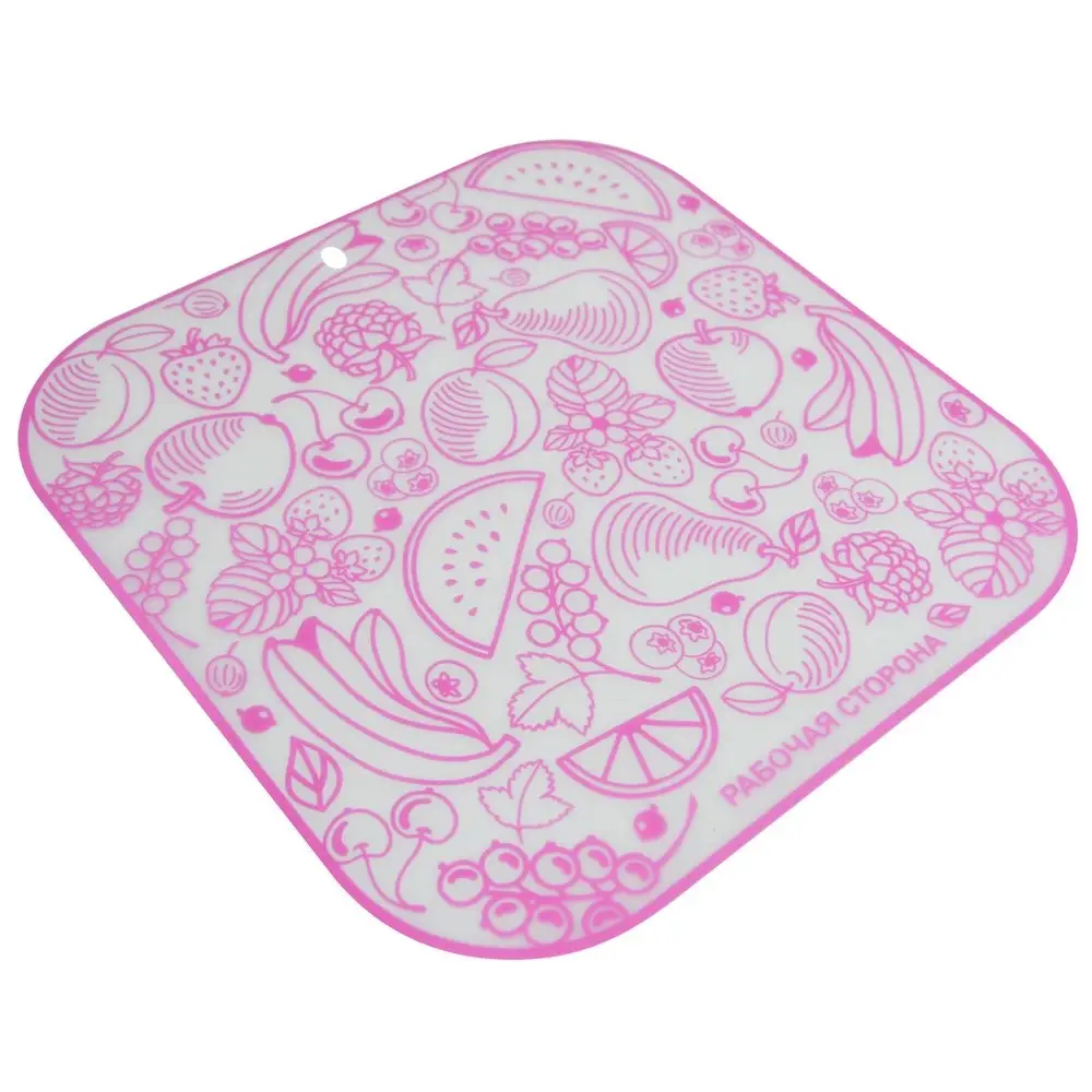 Доска разделочная – это отличный помощник на кухне для любой хозяйки. Доска предназначена для нарезки овощей, фруктов, сыра, хлеба, разделки мяса или рыбы, раскатки теста, а также ее удобно использовать как подставку для терок и слайсеров при шинковке овощей. Преимущество этой доски в том, что она гибкая, что очень удобно для перемещения продуктов. Просто возьмите изделие за края, аккуратно согните, чтобы вся нарезка оказалась посередине, затем наклоните и ссыпьте продукты в салатник, кастрюлю или любую другую емкость. Разделочная доска отлично подойдет для дома, дачи или пикника. Перед первым использованием и после каждого применения помыть в тёплой воде, можно с жидким моющим средством, сполоснуть проточной водой и просушить. Не рекомендуется мыть в посудомоечной машине.