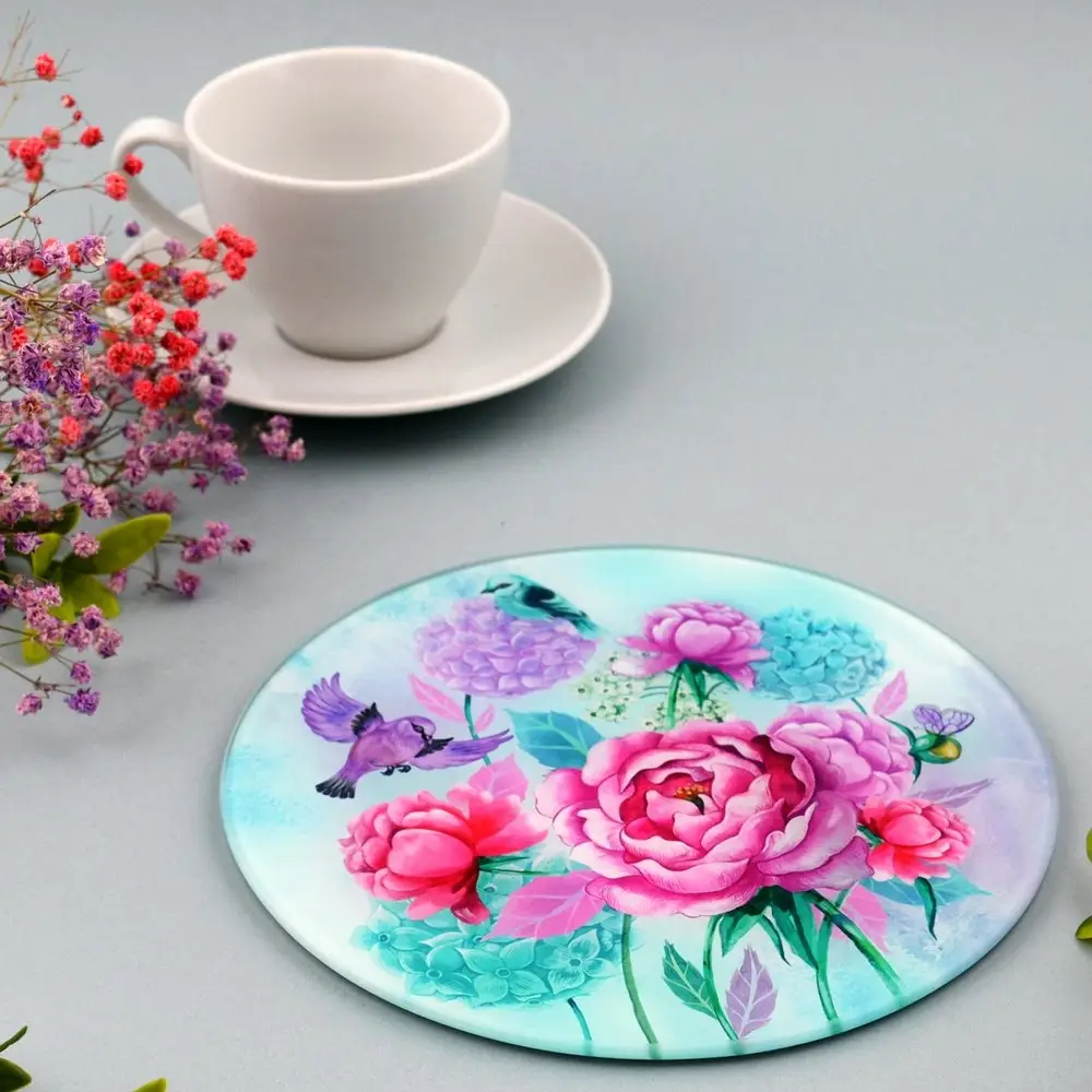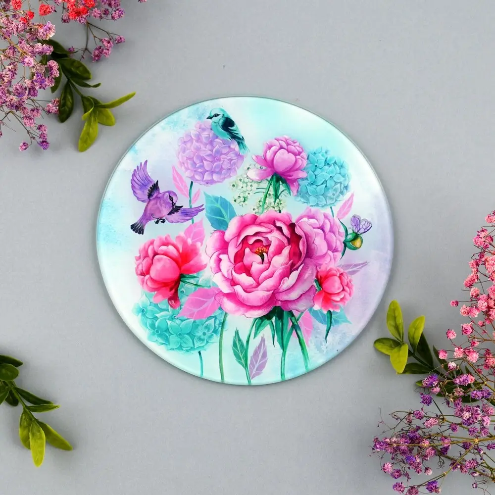 Доска разделочная Пионы и птички 20 см