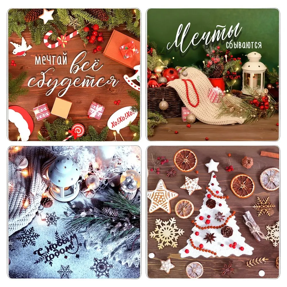 Доска разделочная Подставка под горячее С Новым годом 18х18 см (ассортимент)