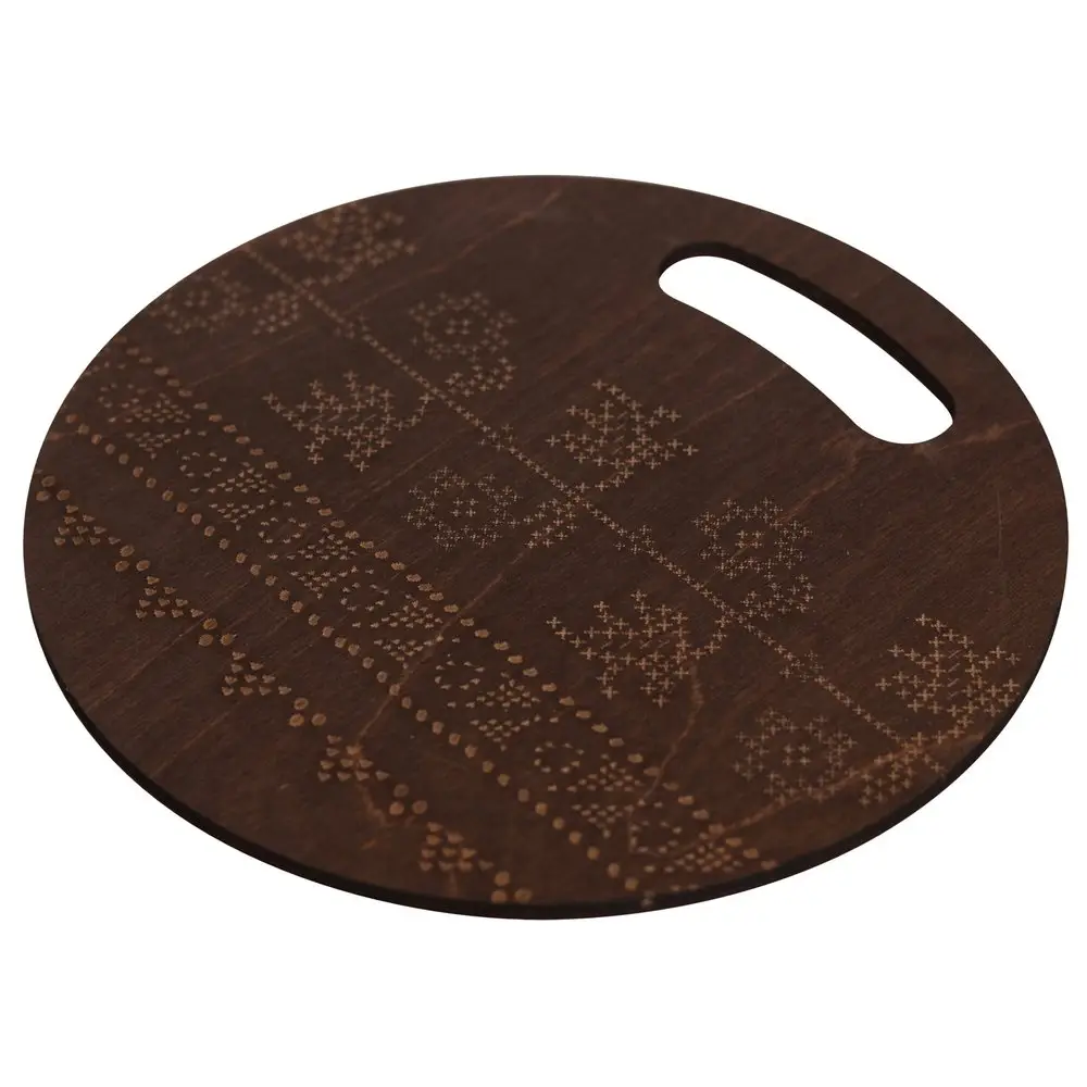 Декорированная, с одной стороны, доска может стать прекрасным подарком и достойным украшением интерьера кухни, столовой, гостиной.