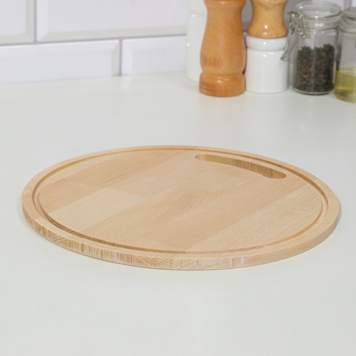 Доска разделочная деревянная с желобом "Круг" 24х24х0,8 см береза