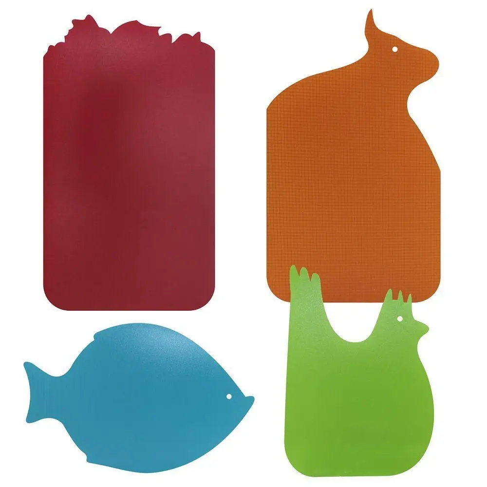 Как удобно, когда для каждого вида продуктов существует своя разделочная доска! С набором гибких разделочных досок вы не перепутаете, что на какой резать. Все очень просто, каждая доска-коврик имеет уникальный дизайн.