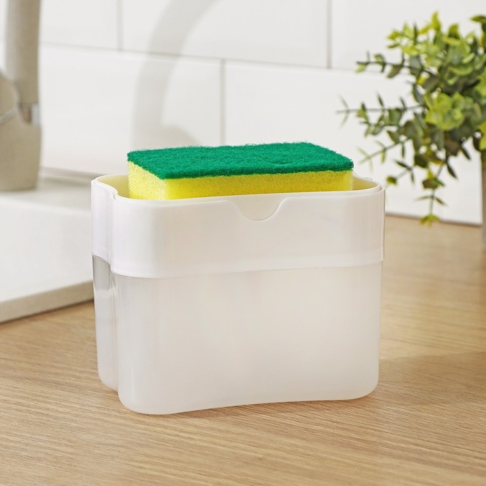 Дозатор для моющего средства с подставкой для губки Доляна, губка в комплекте, 385 мл, цвет белый