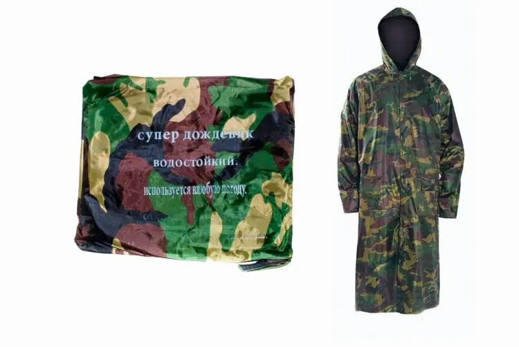 Плащ нейлоновый влагозащитный на молнии, расцветка камуфляж. Легкий прочный непромокаемый эластичный плащ. Предназначен для защиты от механических воздействий, атмосферных осадков, ветра. Дождевик на молнии мужской и женский. Универсальный дождевик плащ будет всегда с вами и защитит от осадков. Накидка защищающая от ветра также пригодится при походе на работу. Плащ-дождевик гораздо удобнее брать с собой, нежели зонт, защищая вас при этом гораздо лучше. Это настоящий унисекс плащ, который подойдет и женщине, и мужчине. Такой дождевик с капюшоном также отличный туристический вариант экипировки, подойдет на мальчика или для девочки подросткового возраста. Защищает от сильного ветра. Плотные манжеты на резинке защищают от холода.