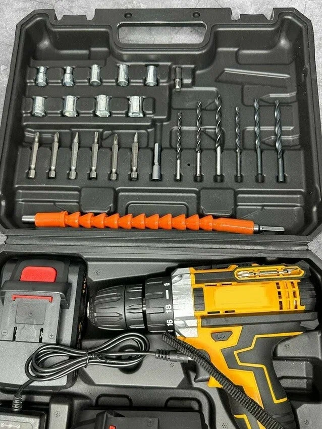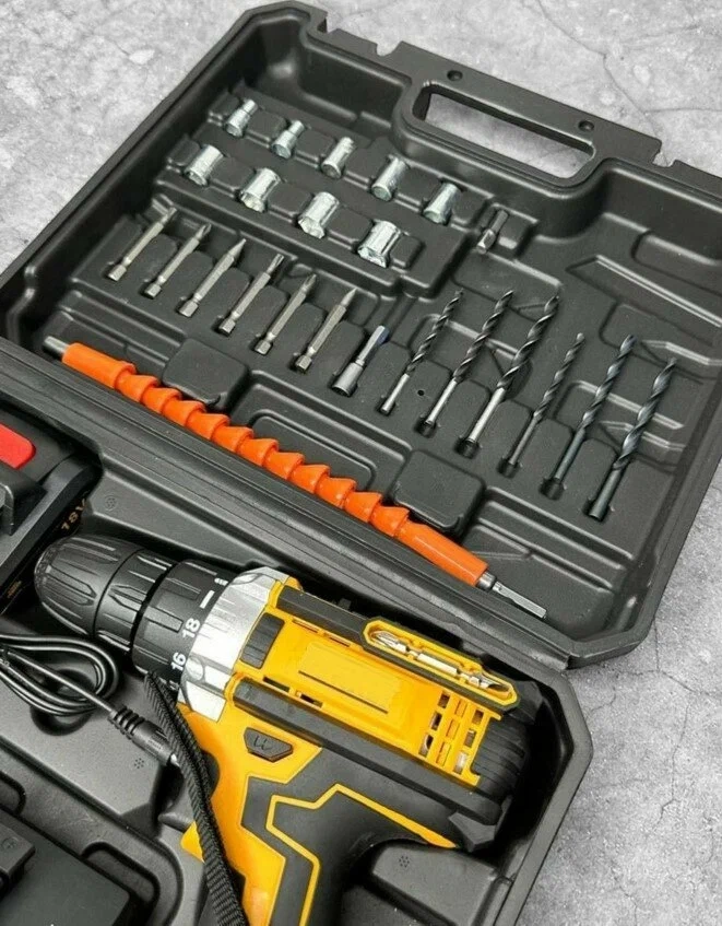 Шуруповерт 18V - это универсальный инструмент, который станет незаменимым помощником в любых работах по дому, ремонту и строительству. Емкость аккумулятора – 2000 mAh Зажим патрона - 0.8-10 мм Количество скоростей – 2 Максимальное количество оборотов - 1650 об/мин Крутящий момент - 42 Нм Напряжение аккумулятора – 18 В Подсветка – есть Реверс - есть Количество скоростей - 2 Режимы - сверление / завинчивание Тип аккумулятора - Li-ion Вес – 2 400 гр