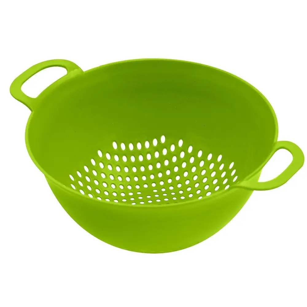 Дуршлаг — идеальное приспособление для мытья ягод, фруктов, салата и овощей, их сушки и даже временного хранения. С помощью дуршлага можно сливать лишнюю воду с тушеных овощей, отваренного картофеля, риса или макарон. Изделие имеет классическую форму, оснащен ручками для удобства использования. Изготовлено из пластмассы (полипропилен).