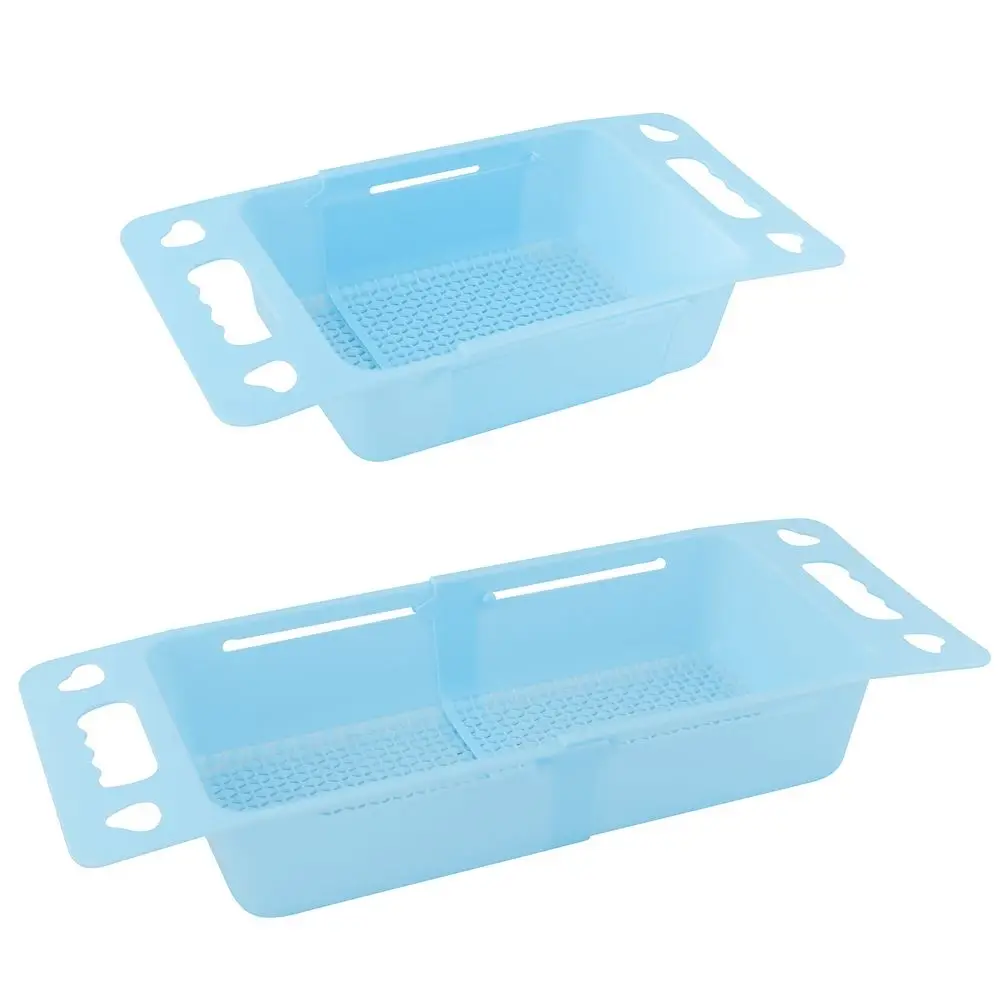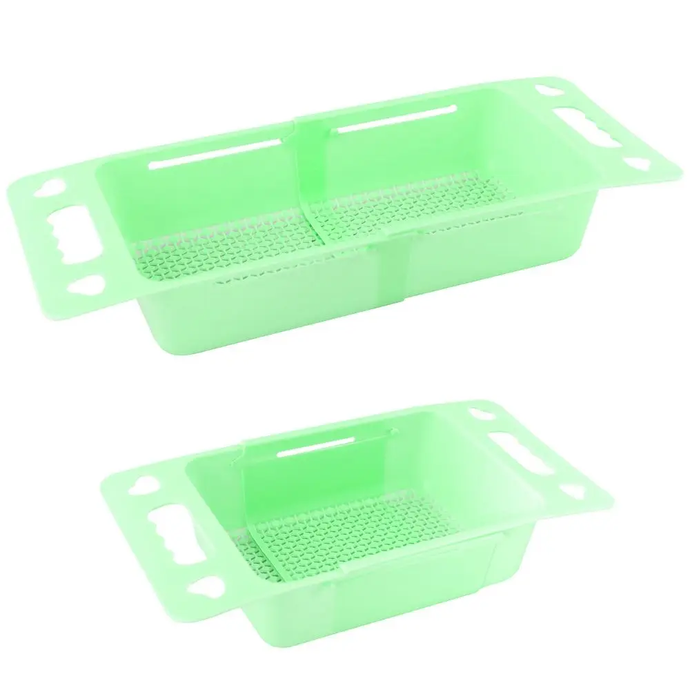 Дуршлаг прямоугольной формы, станет незаменимым кухонным помощником. Предназначен для промывания и сушки овощей, фруктов, ягод и зелени. Благодаря раздвижной конструкции, дуршлаг можно увеличить в размере. Подходит для моек и емкостей размером от 25,5см до 35,5см. Изготовлено: пластмасса (полипропилен). Размер: в сложенном виде 36см*18см, в раздвижном виде 47см*18см; высота 7,5 см.