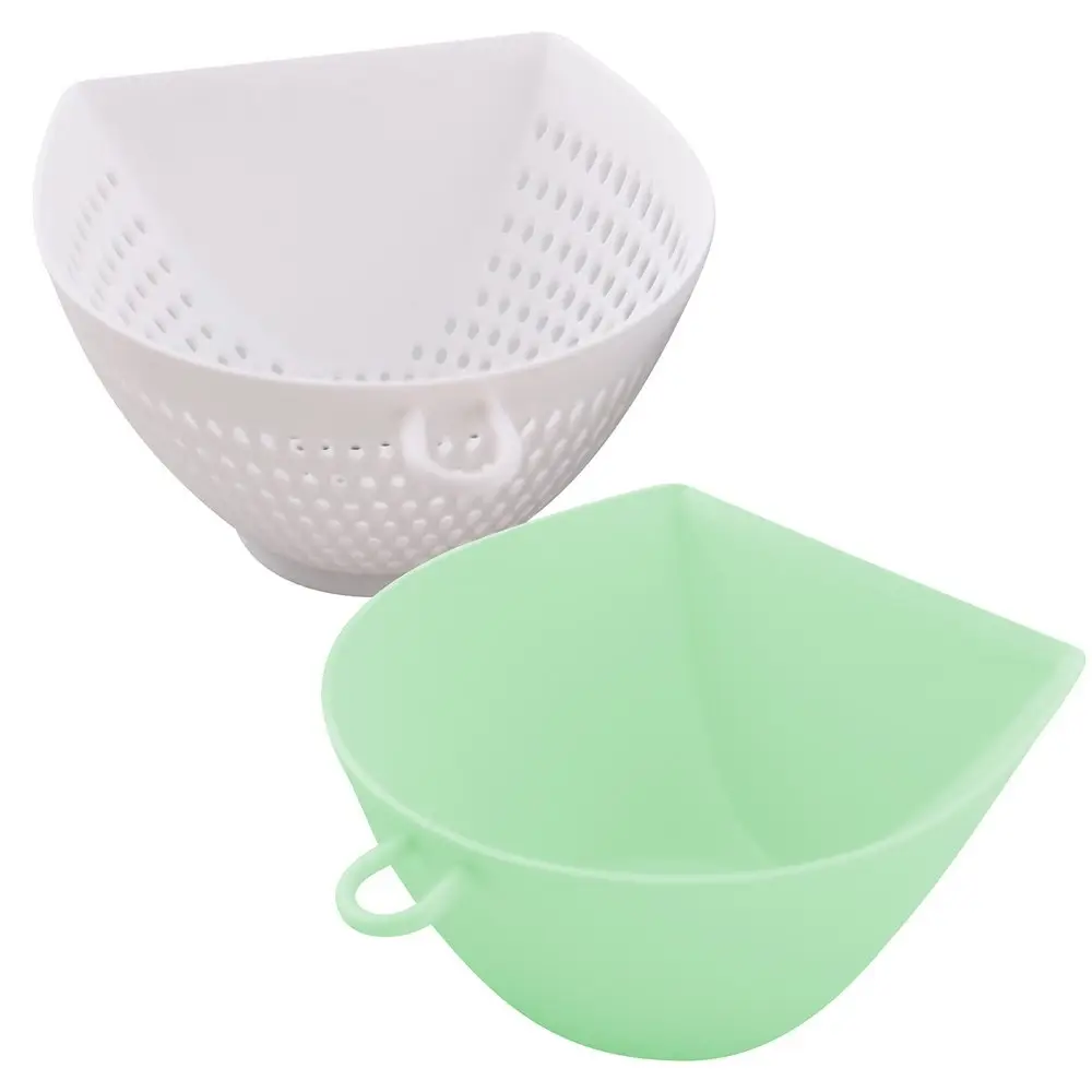 Дуршлаг с миской — удобное многофункциональное изделие, необходимое на любой кухне. Дуршлаг может использоваться для промывания фруктов, сухофруктов, овощей и зелени, а также для слива макаронных изделий, вареного картофеля и других продуктов. Миска подойдет для сушки — промойте продукты и поместите дуршлаг в емкость, чтобы лишняя вода не стекала на стол. Приспособление удобно для размораживания мяса и рыбы. Миска также может использоваться самостоятельно — в ней можно приготовить салат, подать фрукты и овощи на стол и т.п. Изделие удобно хранить в шкафу или на крючке, для этого предусмотрена специальная петелька. Изготовлено из пластмассы (полипропилен). Размеры: дуршлаг - 14х13,5х8 см; миска – 14х13,5х7 см, емкость 500 мл.