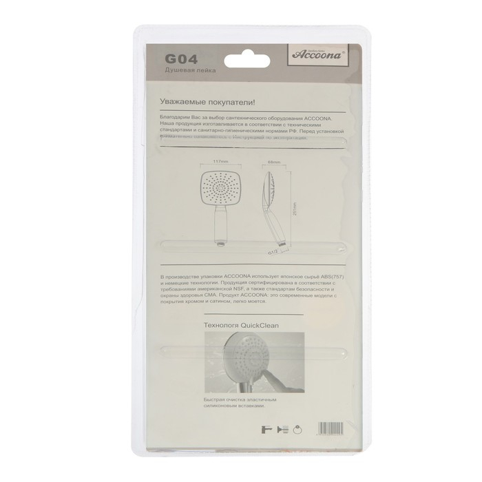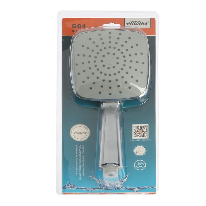 Душевая лейка Accoona G04, 1 режим, корпус пластик, цвет хром