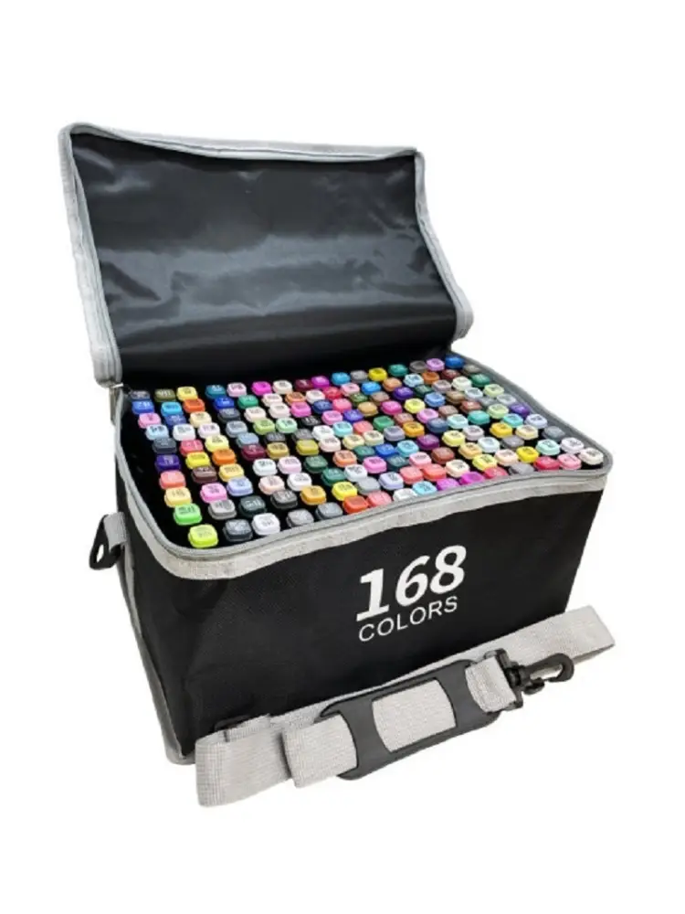 Создавайте яркие, живые и профессиональные работы с набором 168 уникальных спиртовых маркеров. Благодаря широчайшей палитре оттенков вы сможете воплотить любые творческие идеи — от скетчинга и иллюстраций до каллиграфии и дизайна.